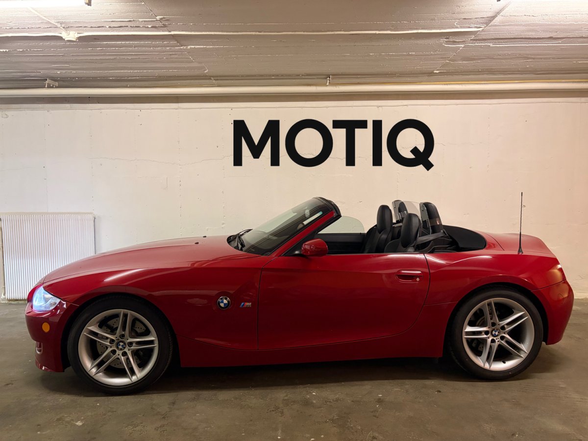 en BMW Z4 M Cabriolet i den ikoniska färgen Imolaröd. Importerad från USA, noggrant utvald och med endast 7930/4927 mil/miles på mätaren.